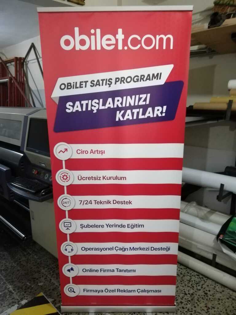 Roll Up Banner, görseli içine saran mekanizmalı, oldukça kullanışlı ve garantili bir reklam ürünüdür. Farklı ebatlarda üretilen ürünler ile tanıtımlar rahatlıkla yapılabilir. Reklam vermek isteyen ya da tanıtımı yapılacak ürünün baskısı ile birlikte kurulum oldukça basit bir şekilde tamamlanır.